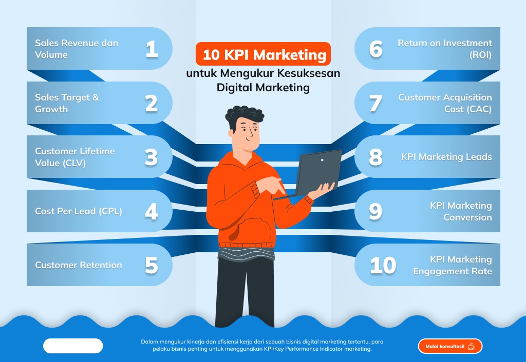 Contoh data yang dimaksud bisa berupa angka penjualan, engagement, reach, leads, growth, dan lain sebagainya. Fungsi KPI adalah mengukur apakah data-data yang diraih ini sudah sesuai dengan tujuan atau belum.